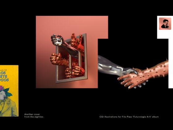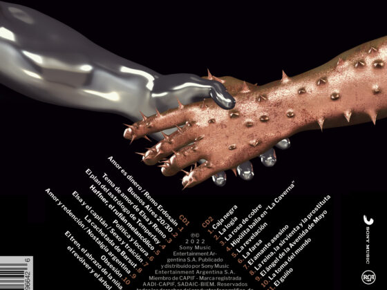 The second —and double— volume, Futurulogia Arlt (Vol.2 – Symphonic), is a collection of symphonic classical pieces that Páez composed inspired by the work of Argentine cult novelist Roberto Arlt in the 30’s: Los siete locos (The Seven Madmen). The design duo commissioned a series of CGI artworks from 3D artist Gonzalo Kaiser based in the illustrated cover of the book’s first edition and the visual diaries on the same novel by painter Daniel Santoro which result in a bold mix of tense dramatic/conspiratorial and smooth erotic metaphors.