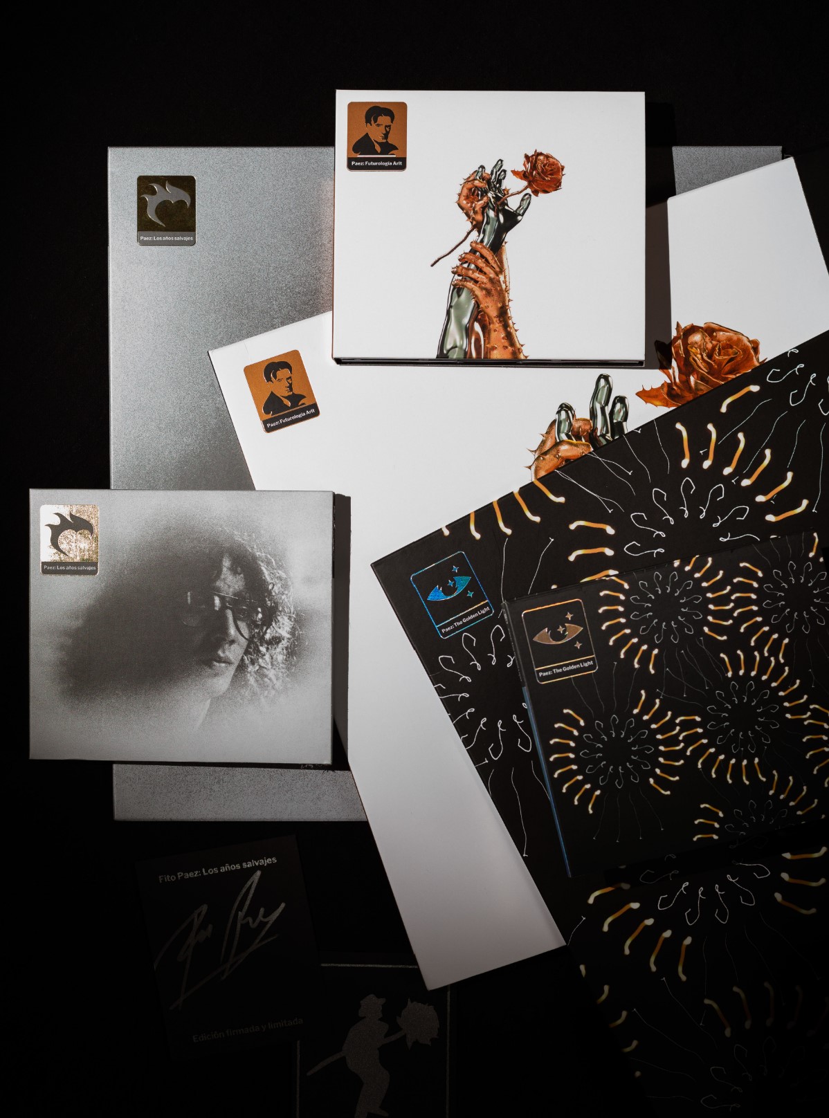 There’s a close portrait of the artist in his youth on the cover of the first volume, Los años salvajes (Vol.1 – Rock/Pop songs). After carefully scrutinizing tons of archives this almost blind white and apparently illegible shot appeared on a print photo contact sheet from a shooting that Fito did back in his hometown, Rosario, with photographer Alejandro Lamas in the early 80’s. Not only hasn’t that material been to press before, but this particular portrait remained unseen by literally nobody till then. So after digitalizing it and numerous restorative treatments, this diaphanous figure of a flawless young Páez staring at the marvelous years to come emerged and it looked undoubtedly iconic.