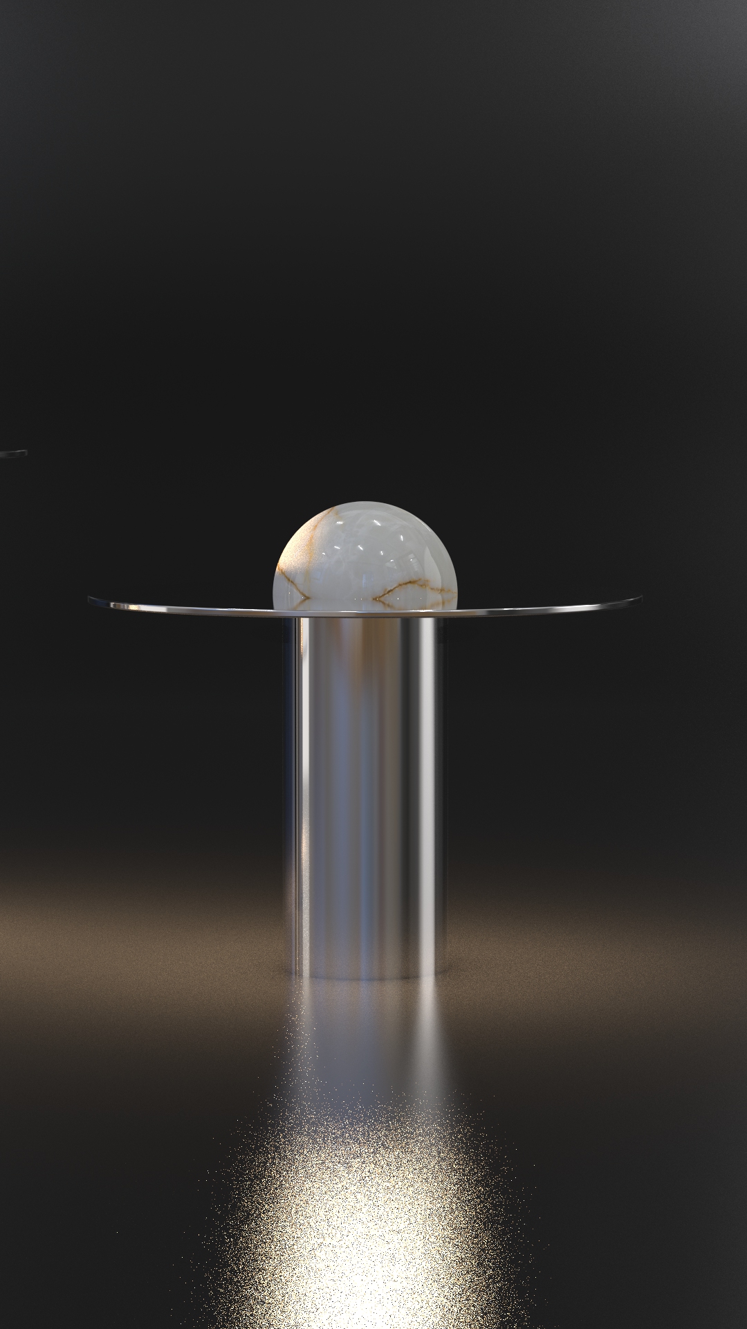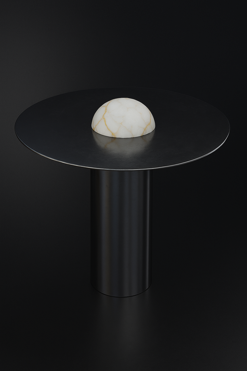 This lamp draws inspiration from a simple relationship between two forms: a sphere and a disc, creating collision and balance at the same time.