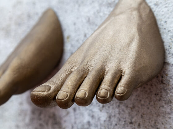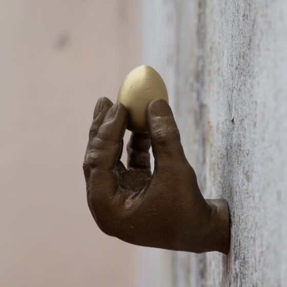 The influence of Rottenberg’s art is evident in the way these sculptures express both fragility and strength. The female feet, exude a sense of vulnerability and strenght, while the hand, both open and grasping, conveys the tension of connection. The hand holding the egg offers a delicate balance, where the potential for creation and destruction is held in a single gesture, resonating with Rottenberg’s thematic focus on the human body as both a vessel of life and an entity subject to time and transformation.